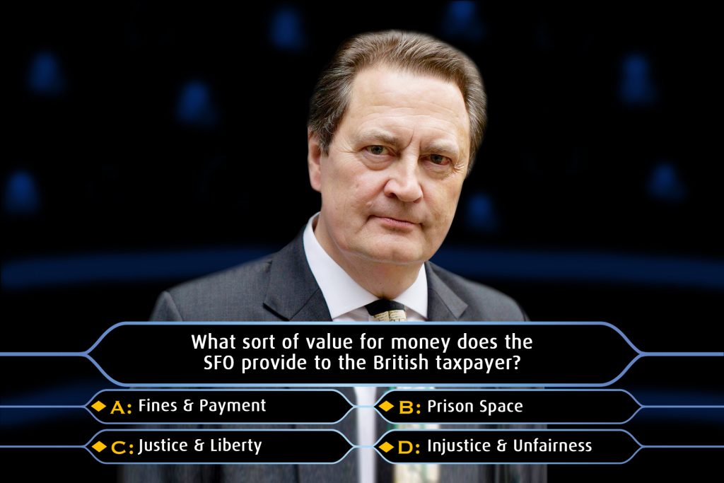 Green then asked the following: ‘What sort of value for money does the SFO provide to the British taxpayer?’ Responding to his own question, he said: ‘Over the period April 2014 to date, the SFO has cost the taxpayer £216m. Over the same period, we have generated £676m in DPA receipts and costs. That is a net contribution of £460m to the Treasury over four years, equivalent to approximately £1m per member of SFO staff.’