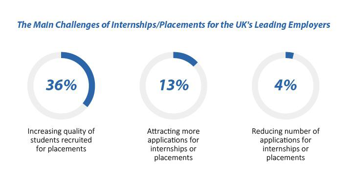 Furthermore, the research also highlighted the main challenges the 100 employers face when recruiting university students for internships and placements. 36% want to increase in the quality of students they hire for placements. Interestingly, 13% are intending to attract more applications for their future internships/placements.