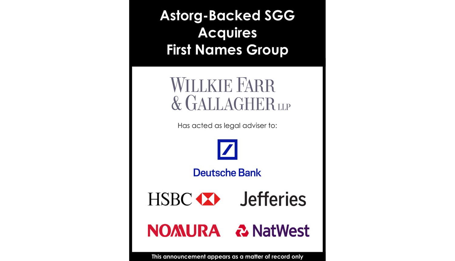 SGG Group, a leading investor services firm, backed by Astorg Partners, announced that regulatory approval has been received and the transaction to acquire First Names Group has successfully completed.