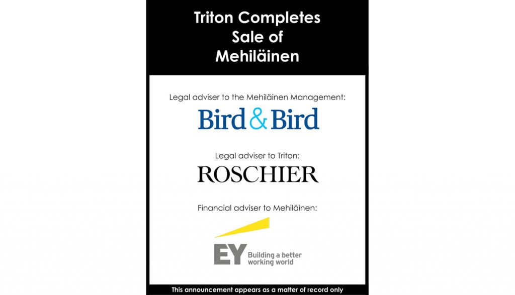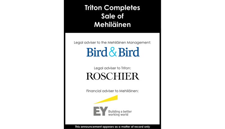 Funds advised by Triton ("Triton") and KKR have successfully completed the sale of Mehiläinen, a leading provider of private health care and social services in Finland, to CVC Capital Partners, acting together with a consortium of Finnish institutional investors and the Mehiläinen Management Group.