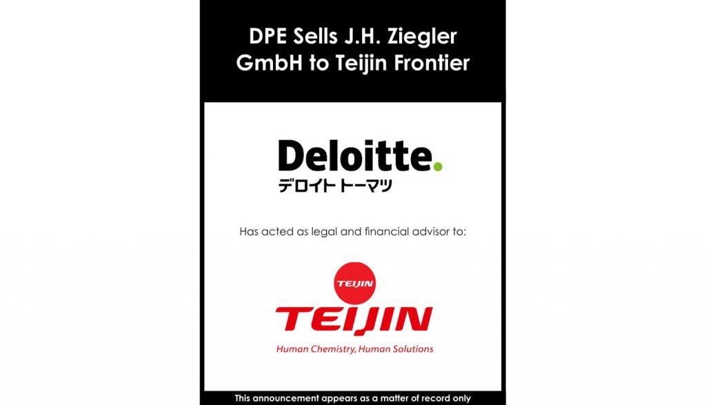 Teijin Frontier Co., Ltd. is a wholly owned subsidiary of Teijin Ltd., a Japanese chemical and pharmaceutical group with around 20,000 employees and annual sales of more than € 6 billion. The company is listed on the Japanese stock market (WKN: 855254/ISIN: JP3544000007). Its subsidiary Teijin Frontier Co., Ltd. specializes in the manufacture of clothing and industrial textiles, so that the takeover of Ziegler represents an attractive expansion of its portfolio, whilst simultaneously enabling entry into the European market.