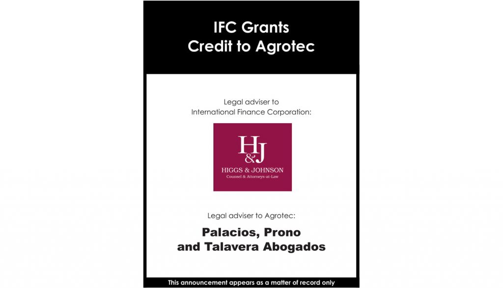 The International Finance Corporation (IFC), an entity of the World Bank, granted a loan of USD 25 million to Agrotec SA, to help support the Paraguayan agricultural services company. Agrotec is one of Paraguay’s leading agronomy services and is a subsidiary of the Agrihold Group, which was established in 1969 and today operates at both national and international level in the fields of agricultural, rural development and environment, offering a wide range of services which include technical assistance, and supply of scientific and analytical equipment.