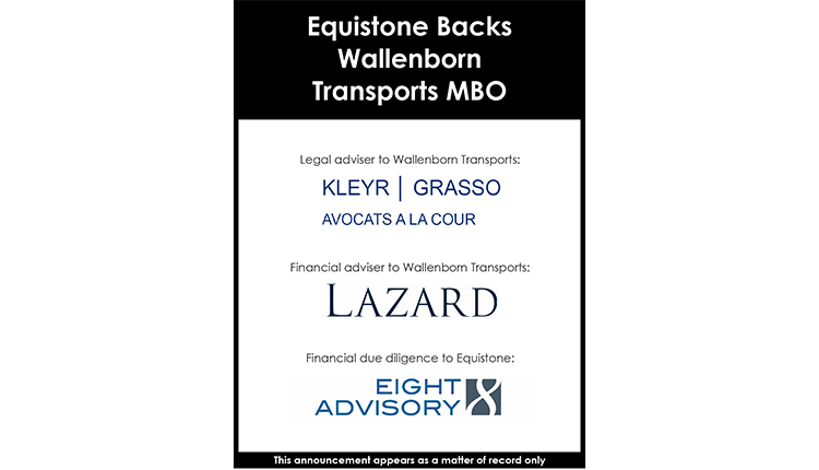 A trusted partner to over 800 companies in more than 40 markets, Wallenborn Transports will benefit from Equistone’s support as it further positions itself as a leading player in a fragmented European market, while pursuing geographic expansion and diversifying its offering. As he has done for the past 33 years, Frantz Wallenborn will continue to play a leading role in the company’s development and will remain a significant shareholder alongside Equistone.