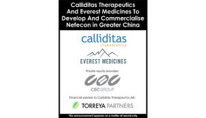 Calliditas Therapeutics AB (“Calliditas”) and Everest Medicines II Limited (“Everest”) announced that they have entered into a license agreement, in which Everest will develop and commercialize Calliditas’ leading drug candidate Nefecon in Greater China and Singapore for the chronic autoimmune kidney disease IgA Nephropathy (IgAN).