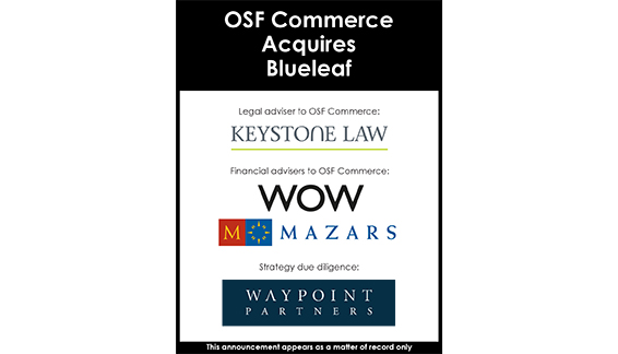 OSF Commerce, an OSF Global brand, announced the acquisition of award-winning UK eCommerce agency Blueleaf - whose clients include Laura Ashley, Life Style Sports, Tate Modern and V&A Museum – as part of its strategy to build a significant presence in the UK.