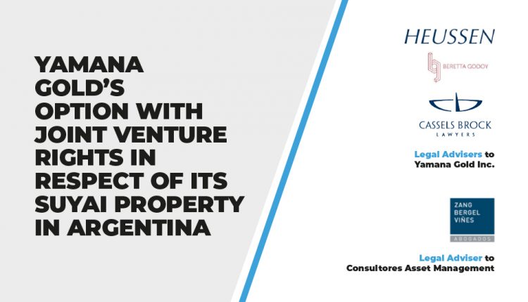 In the Netherlands, Heussen B.V. advised Yamana Gold Inc. with Tim Schreuders, Martijn Koot, Juliëtte Schueler, Thijs Butter and Corine Vos.