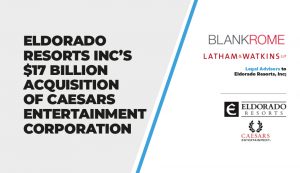 Eldorado Resorts, Inc. (now Caesars Entertainment, Inc.), completed its $17 billion acquisition of Caesars Entertainment Corporation. Blank Rome LLP and Latham & Watkins LLP advised Eldorado Resorts Inc on the deal.