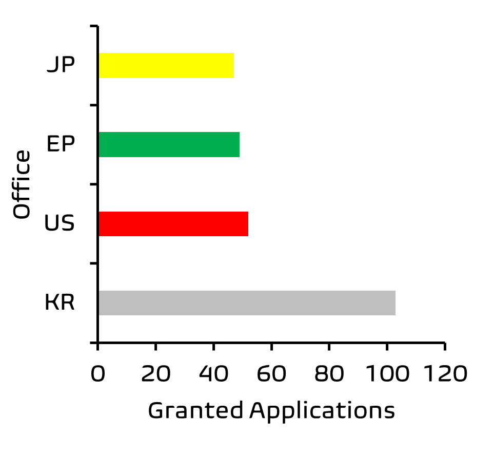 Further analysis of these results by Patently® also indicated that more patent applications in this field are concluding in grant by patent offices in South Korea as compared to cases being granted by the European Patent Office.