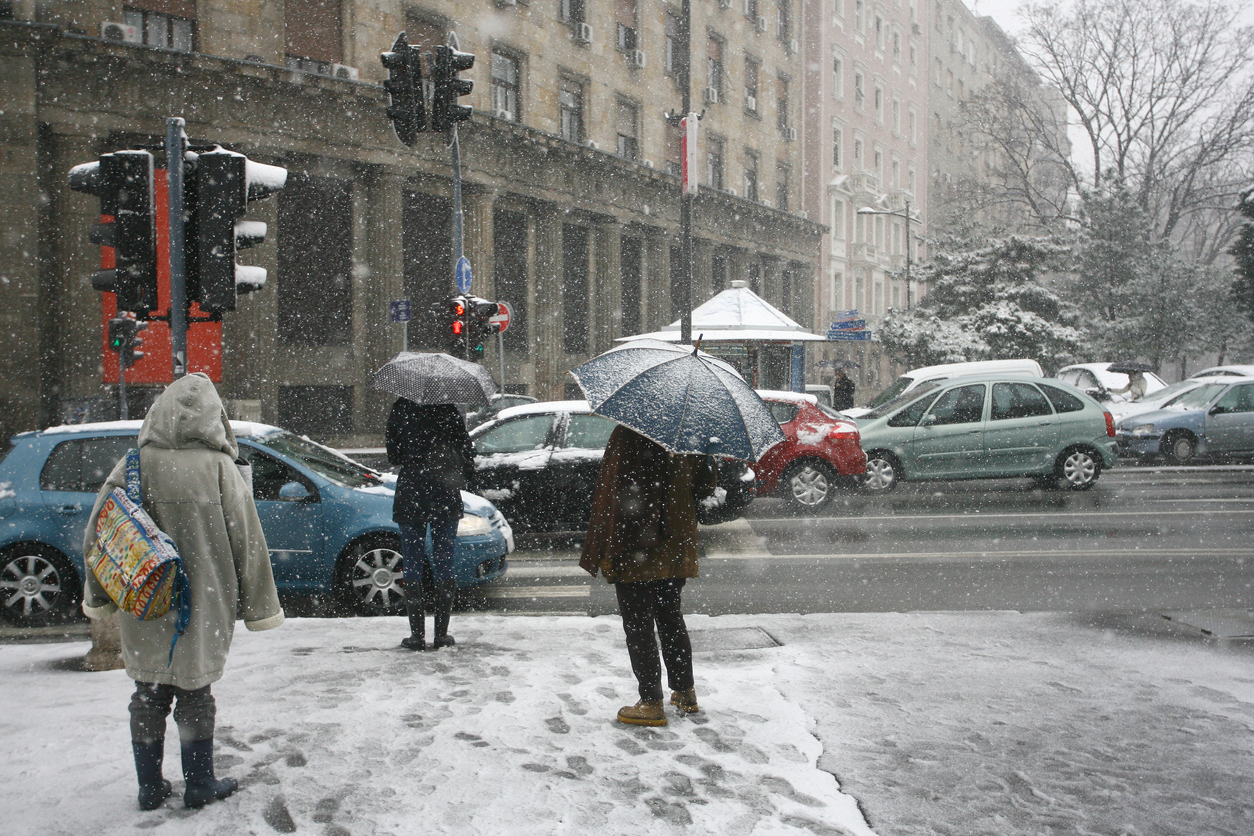 Boots are ideal for walking through snow. Make sure your shoes have good tread on them if there could be any icy spots on sidewalks or city streets so that you don't slip and fall.