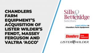 Sills & Betteridge LLP were engaged as solicitors for Chandlers in this acquisition. James Conduit, head of the corporate team, led the transaction supported by Raj Blackburn who dealt with all commercial property matters. The transaction progressed against a very tight timetable with the exchange of contracts occurring around six weeks after their initial instruction. “James’ experience of corporate transactions in the agricultural machinery sector was key to understanding and negotiating the complex array of asset classes that made up the target business.”, commented the team at Sills & Betteridge LLP.