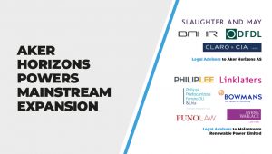 Global wind and solar company, Mainstream Renewable Power, has signed an agreement with the renewable energy investment company Aker Horizons (a wholly-owned subsidiary of Aker ASA) which will take a 75% equity stake in the company, subject to regulatory approval.