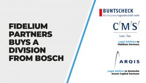 Gibson Dunn and Gleiss Lutz served as legal advisors to Bosch on the sale, while ARQIS advised Deutsche Invest. BUNTSCHECK advised Fidelium Partners on the competition law and merger control aspects of the transaction. The BUNTSCHECK team advising on this matter consisted of Dr Martin Buntscheck (Partner) and Immo Schuler (Associate). Fidelium was also advised by CMS Hasche Sigle. The firm’s team comprised Dr Michael Wangemann, Dr Nina Hartmann, Dr Markus Houses, Dr Andreas Heim;, and Associate Florian Seelig.