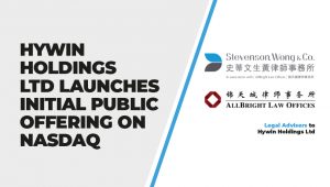 Stevenson, Wong & Co. AllBright Law Offices, and Sidley Austin LLP advised Hywin Holdings Ltd in its initial public offering as legal advisers.