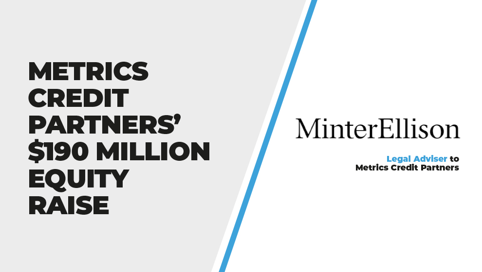 MinterEllison recently advised Metrics Credit Partners (“Metrics”) on the successful $190+ million institutional placement undertaken by its ASX-listed MCP Master Income Trust (ASX:MXT).