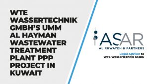 ASAR – Al Ruwayeh & Partners (ASAR) acted as Kuwaiti legal counsel to the consortium of WTE Wassertechnik GmbH (WTE) and International Financial Advisors Holding KSCP, who were awarded the Umm Al Hayman Wastewater Treatment Plant PPP Project in Kuwait.