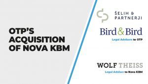 Bird & Bird and Selih & partnerji advised OTP on the acquisition of Nova KBM bank in Slovenia from a company owned by Apollo and EBRD. Paul Weiss and Wolf Theiss advised the seller on the deal. The transaction, which awaits regulatory approvals, is expected to be finalised in the second quarter of 2022.