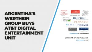AT&T was advised on the transaction by Sullivan & Cromwell. The buyer was advised by a range of firms including Skadden; Bruchou, Fernández Madero & Lombardi; Demarest Advogados; Carey; Rodrigo, Elías & Medrano Abogados; Posse Herrera Ruiz; Bustamante & Bustamante; D’Empaire, BSZE; Chancery Chambers; Guyer & Regules, and Pollonais, Blanc, de la Bastide & Jacelon.