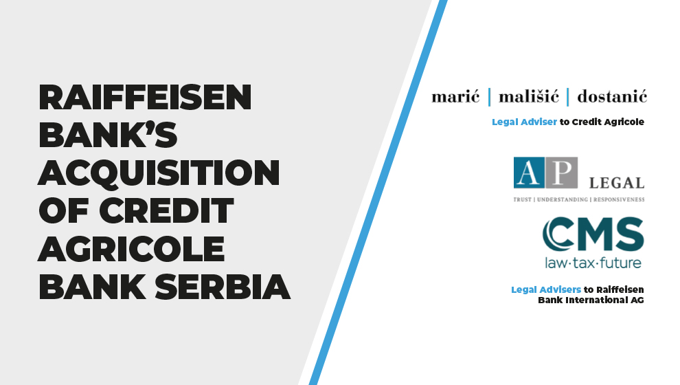 Marić, Mališić & Dostanić acted as legal advisor to Credit Agricole SA during the sale. The team was led by managing partner Ana Marić and comprised partners Rastko Mališić and Oliver Radosavljević, as well as lawyers Uroš Žigić and Marina Živanović. Aside from the principal M&A aspect of their role, the team also also covered regulatory, competition and labour issues for the seller and provided full transactional support in all phases of the deal. D’Ornano Partners also advised Credit Agricole.