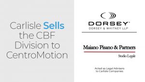 An important part of the transaction was the CBF division’s sale of the equity of two Italian legal entities to CentroMotion. Dorsey & Whitney LLP therefore tapped Maiano Pisano & Partners to advise and assist Carlisle on all legal and regulatory matters involved in this transfer. The Maiano Pisano & Partners team was led by partner Dr. Maurizio M. Maiano, assisted by senior associates Luca Marzolini and Ludovica C. Maiano. Their support and assistance covered mainly corporate and regulatory areas leading to the transfer deed for the sale of the equity of the Italian entities, together with the securing of the Italian regulatory clearances.