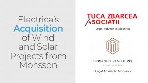 Tuca Zbarcea & Asociatii advised the buyer. The assets consisted of three project companies owned by Monsson: two photovoltaic parks in the Satu Mare area and a wind farm in the Dobrogea area.