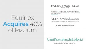 Pizzium shareholders were also advised by Molinari Agostinelli and Gattai Minoli Partners, while Equinox was advised by Gatti Pavesi Bianchi Ludovici. Due diligence was carried out by PwC for business and accounting aspects and by Deloitte for environmental aspects.