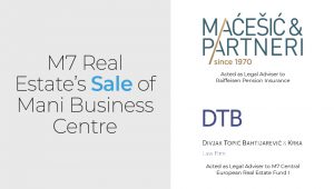 Macesic & Partners advised Raiffeisen Pension Insurance on the sale. DTB advised M7.