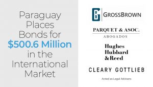 Gross Brown Law Firm advised Citigroup Global Markets Inc and Goldman Sachs & Co LLC under Paraguayan law, as initial purchasers in the Republic of Paraguay’s issuance of $500.6 million 3.849% bonds. The bonds, which are due 2033, have been admitted to trading on the Euro MTF Market of the Luxembourg Stock Exchange. The offering was launched and priced on 20 January 2022 and closed on 28 January 2022.