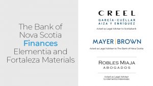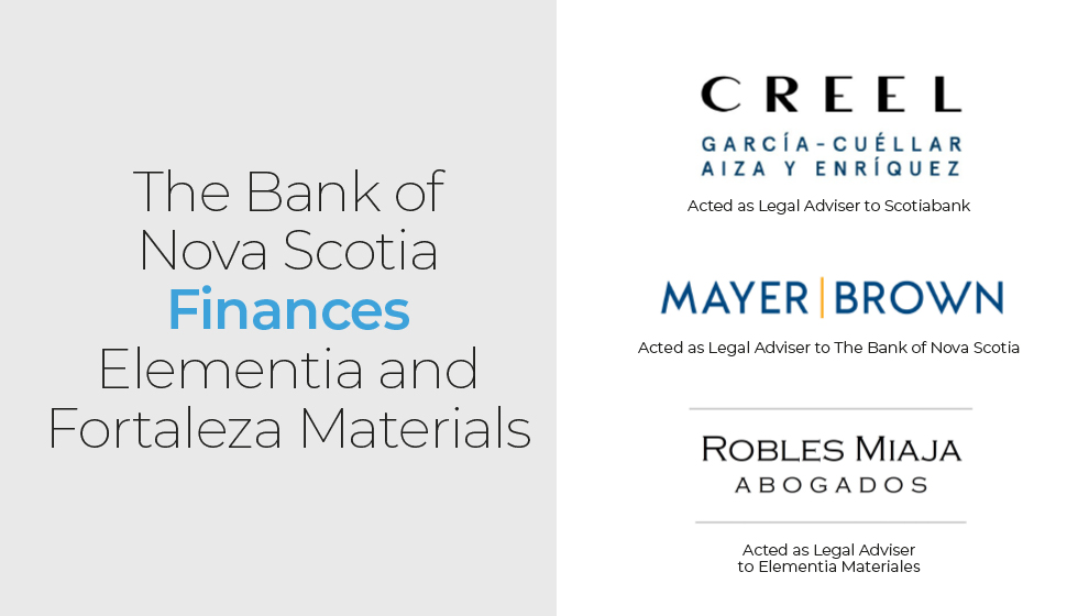 Creel, García-Cuéllar, Aiza y Enríquez advised Scotiabank with a team comprising partners Giovanni Ramírez Garrido, Alejandro Isaac and Eduardo Brandt López, in addition to senior associate Santiago Aguilar Vega and associate Mirna Alvarado Cárdenas. Mayer Brown also assisted Scotiabank. Bufete Robles Miaja and Davis Polk & Wardwell advised the borrowers.
