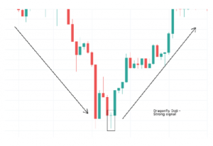 Shaven Bottom: This is the inverse of the Doji Star, where the doji appears in a downtrend, and then a larger real body completes the pattern. In this case, there are small shadows on both sides of the candle.