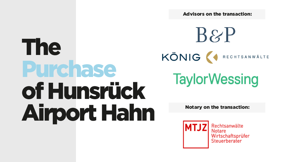 The purchase ends a protracted stalemate that has continued since the airport’s bankruptcy in 2021, with the future of a crucial piece of transport infrastructure at stake. Following the insolvency, the Hahn Airport was sold to the Swift Conjoy investor group in Frankfurt at the end of June 2022. The asset was acquired at that time in an auction process involving ‘bidder showdown’ until directly before Dr Lorenz’s notarisation in Frankfurt. The deal ultimately fell through without Swift Conjoy paying the purchase price.
