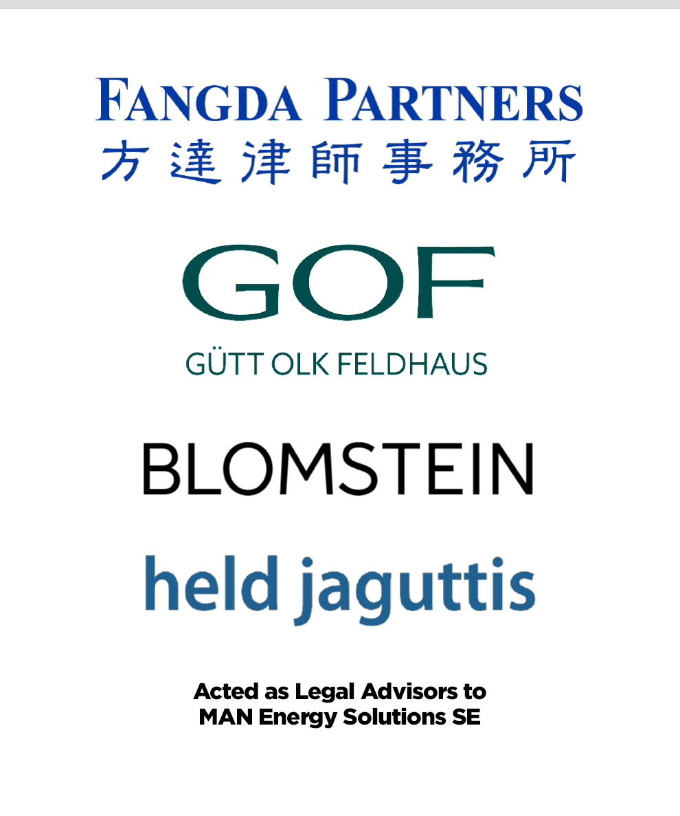 Fangda Partners advised MAN Energy Solutions on Chinese law aspects with a team led by partner Jack Li.