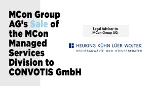 Heuking Kühn Lüer Wojtek’s Munich M&A practice advised MCon Group AG with a team led by Dr Mathias Schröder.