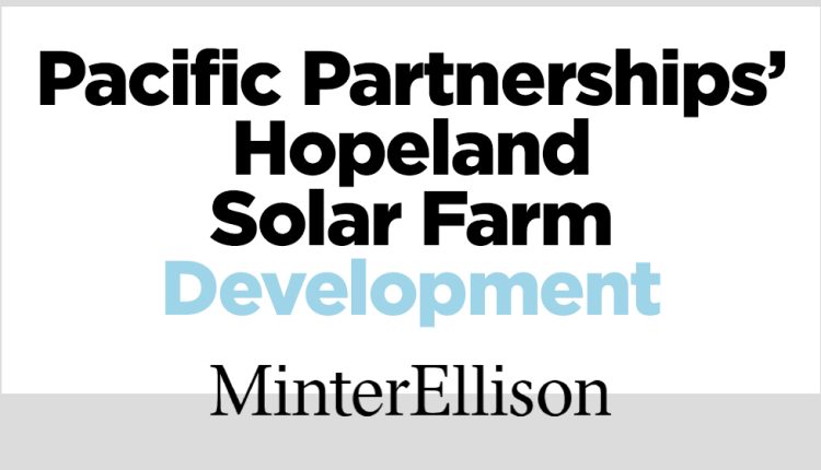 MinterEllison advised CIMIC Group subsidiary Pacific Partnerships on its acquisition of the development rights for the 300MWdc Hopeland Solar Farm in Queensland, Australia. The rights were purchased from Renewable Energy Partners, a developer of renewable projects based in Brisbane.