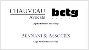 Yara received legal advice from BCTG Avocats (Augustin Nicolle, Partner and Pierre de Kerpoisson, associate) supporting them in African transactions. They also collaborated with the Ivorian Law firm Chauveau Avocats, their team was led by Jean-François Chauveau, alongside associates Claude-Andrée Groga, Hervé Bekrou, and Mohamed ZIDA.