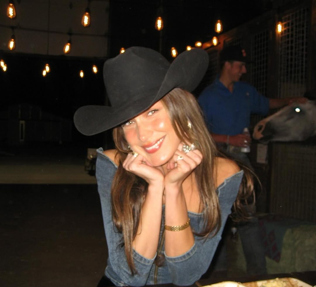 Hadid’s character, Sadie, makes another appearance at the Yellowstone auction, this time fully dressed in Western attire—cowboy hat, distressed tank top, blue jeans, and a large belt buckle. The scene further showcases Hadid’s natural ease in front of the camera and on horseback, a skill she’s well-versed in, as she has previously shared on social media.