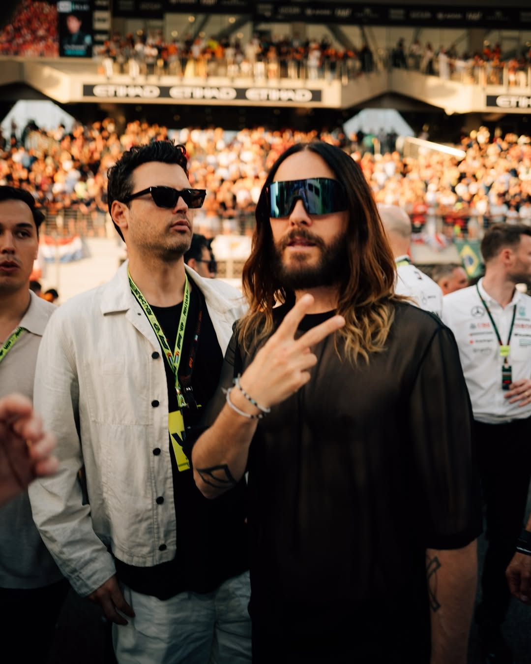 Jared Leto kept his look sleek and simple, wearing a lightweight shirt with elbow-length sleeves, paired with classic black trousers and shoes. His sunglasses with polarized lenses completed the look, adding a cool, understated touch that perfectly suited the laid-back yet chic atmosphere of the event.