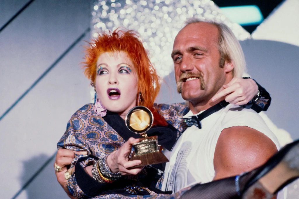 Wrestling god Hulk Hogan presenting Cyndi Lauper with Best New Artist, Grammy