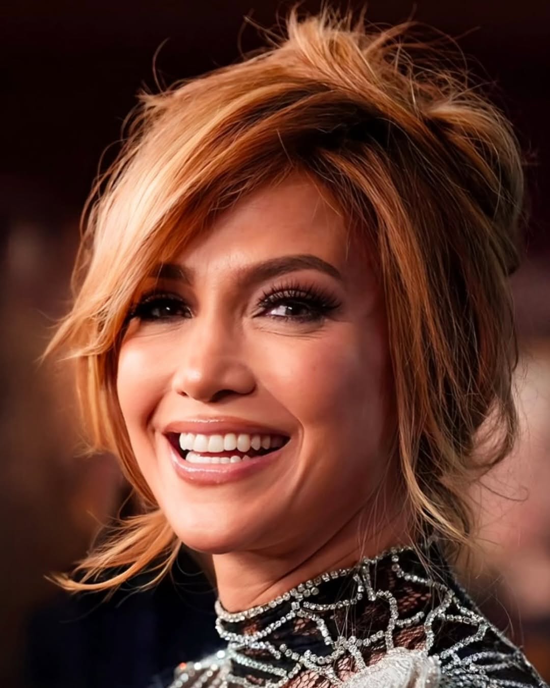 Known for her impeccable style, Lopez wore a stunning two-piece ensemble that showed off her toned abs. The sparkling outfit was covered in rhinestones, beads, and gold sequins, making her the focal point of the event.