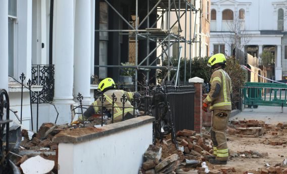 London Fire Brigade crews were alerted to the incident at 1:10 am, with two fire engines and a fire rescue unit dispatched to the scene. They were joined by a 32-meter-tall turntable ladder from Paddington Fire Station to assist in evacuating residents. Crews worked quickly to secure the area, checking for anyone who might still be inside and helping residents navigate dangerous conditions. For safety, helmets were provided to everyone leaving the buildings due to the risk of further falling debris.