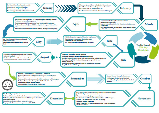 From establishing a Brexit Working Group, which lobbies on behalf of the profession for the free movement of lawyers, to campaigning for the independence of judiciary, or launching Wellbeing at the Bar, a website dedicated to supporting the profession on wellbeing and mental issues, the Bar Council was able to represent the Bar efficiently. You can see below our timeline for 2016, with some key examples of this work.